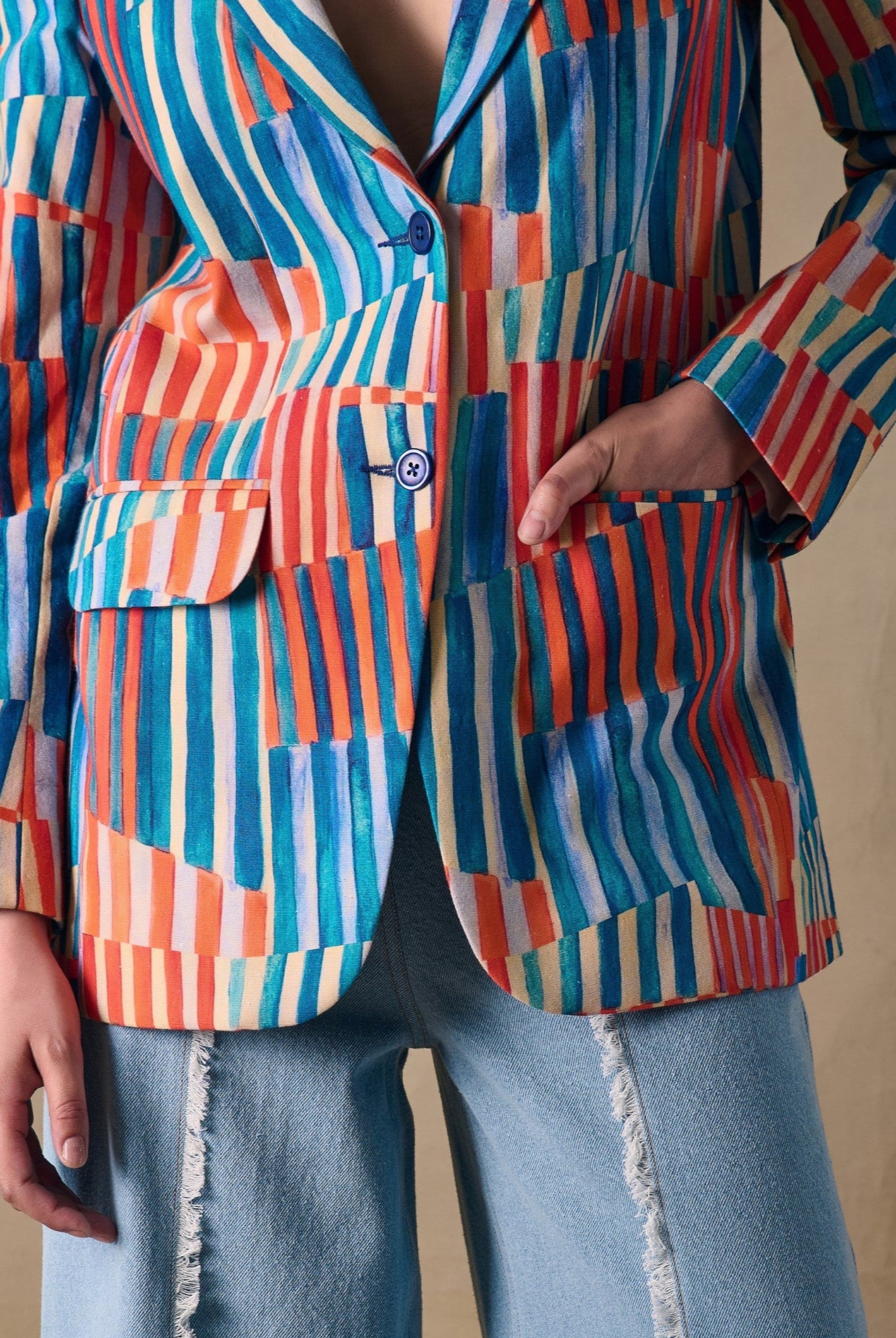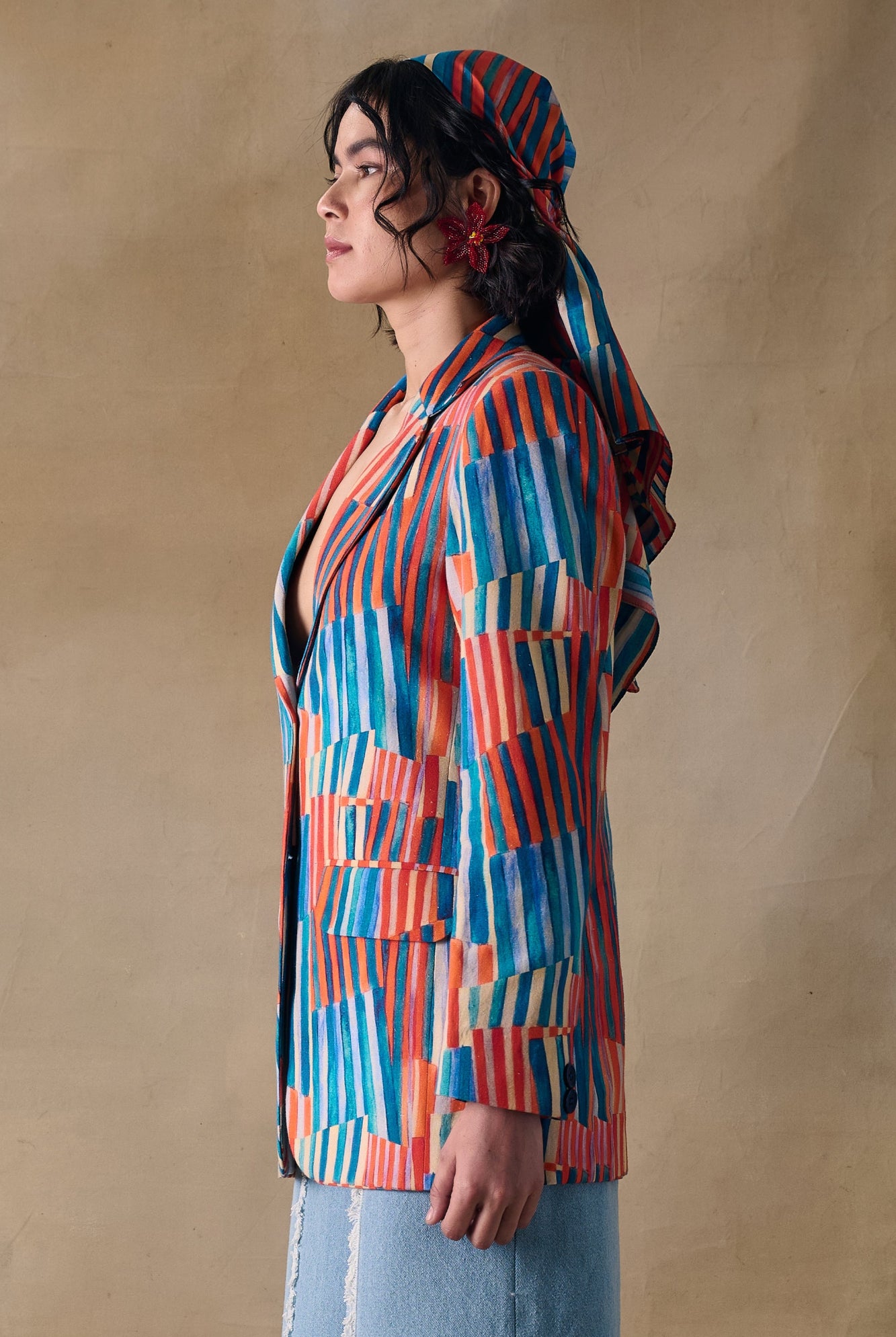 Inspired by Asilah, Morocco, a coastal gem where artists from around the world transform whitewashed walls into vibrant murals, this collection captures the town’s creative spirit through flowing silhouettes, bold hues, and handcrafted details. It’s a wearable canvas celebrating art, culture, and sunlit serenity!