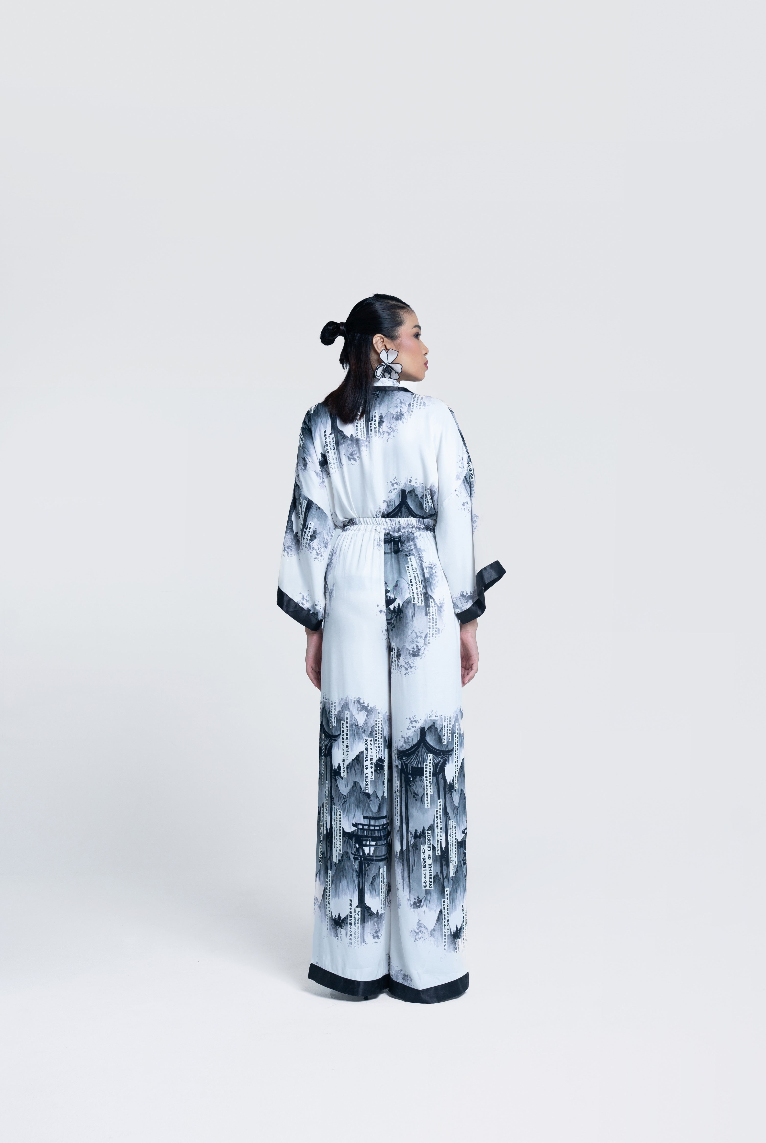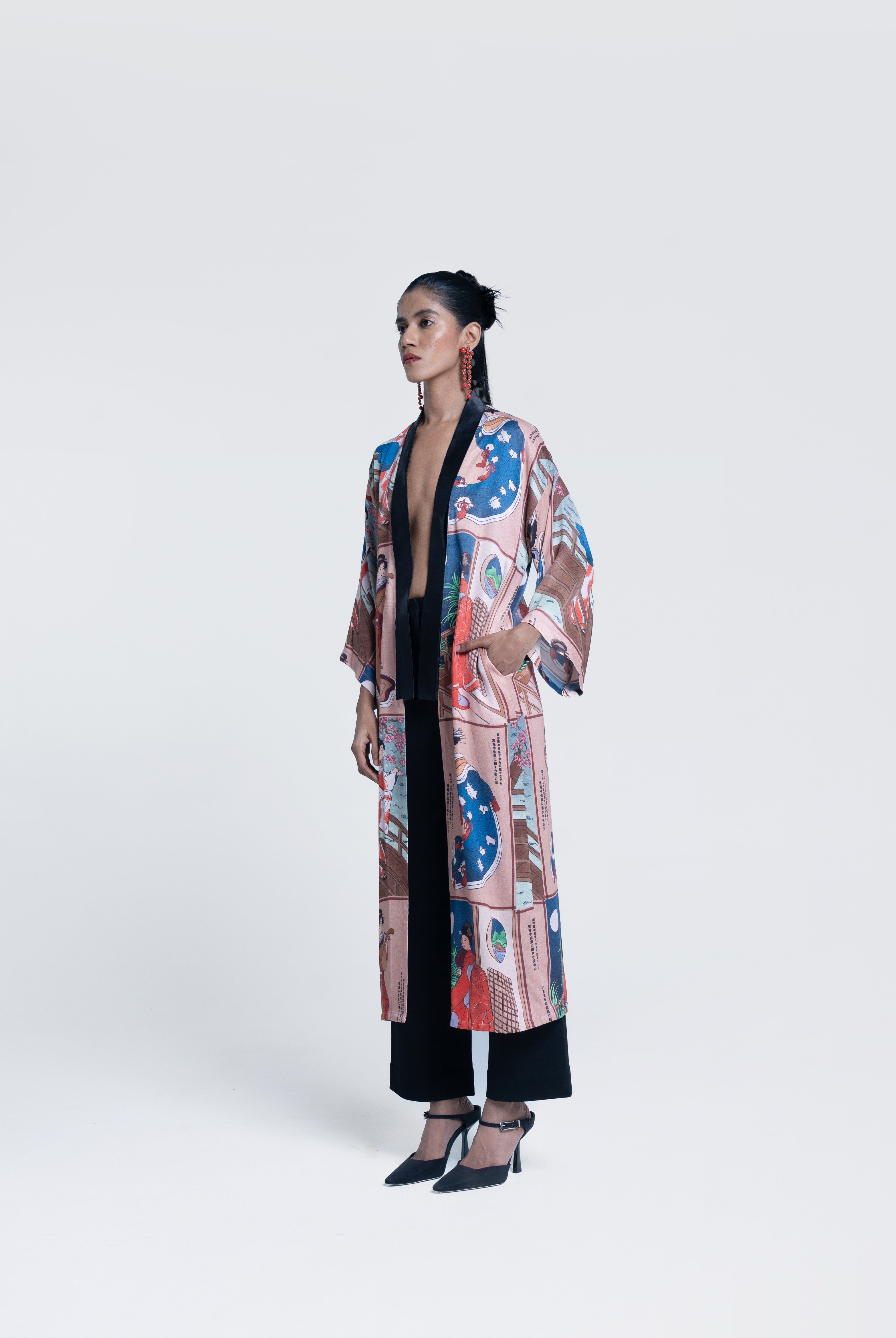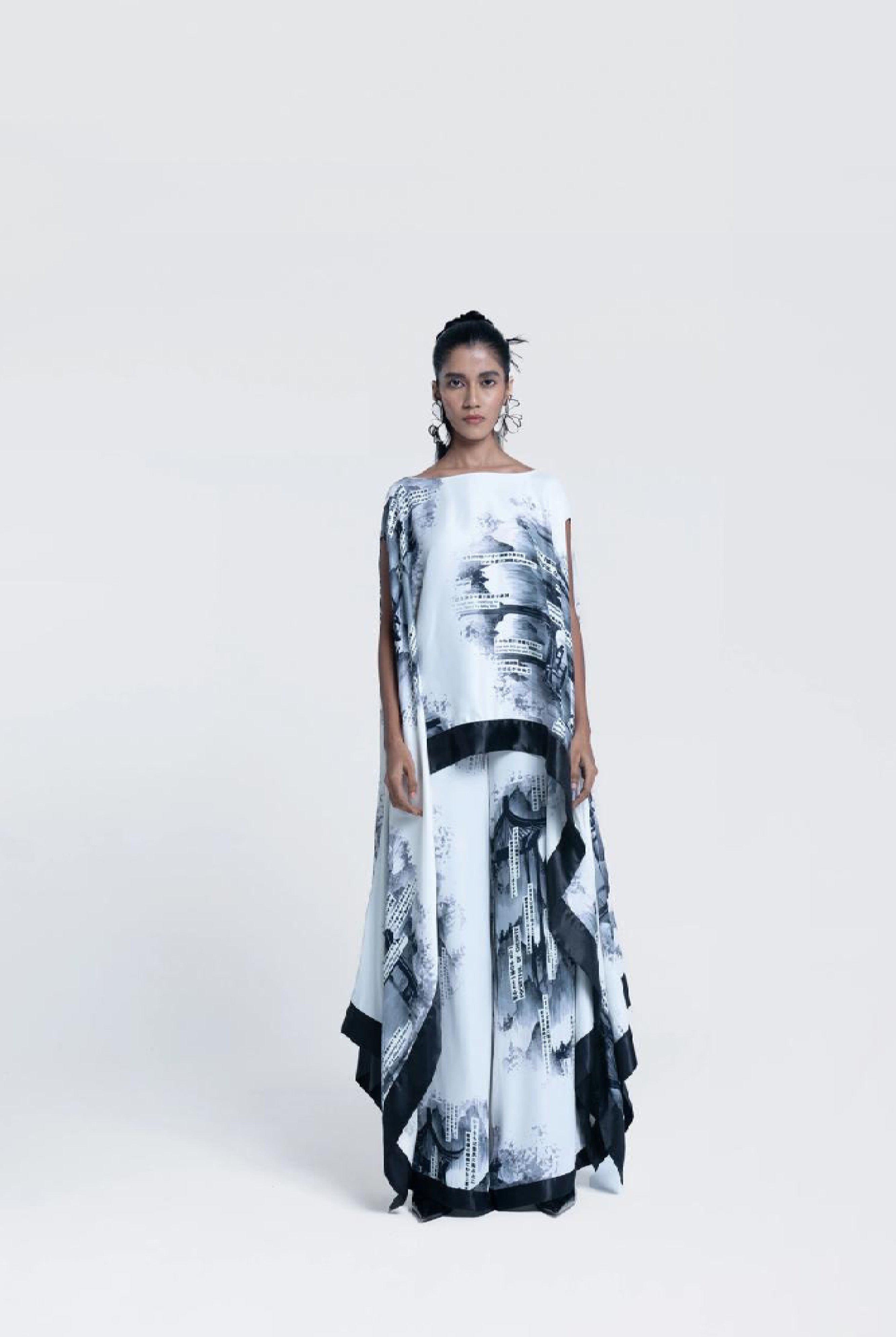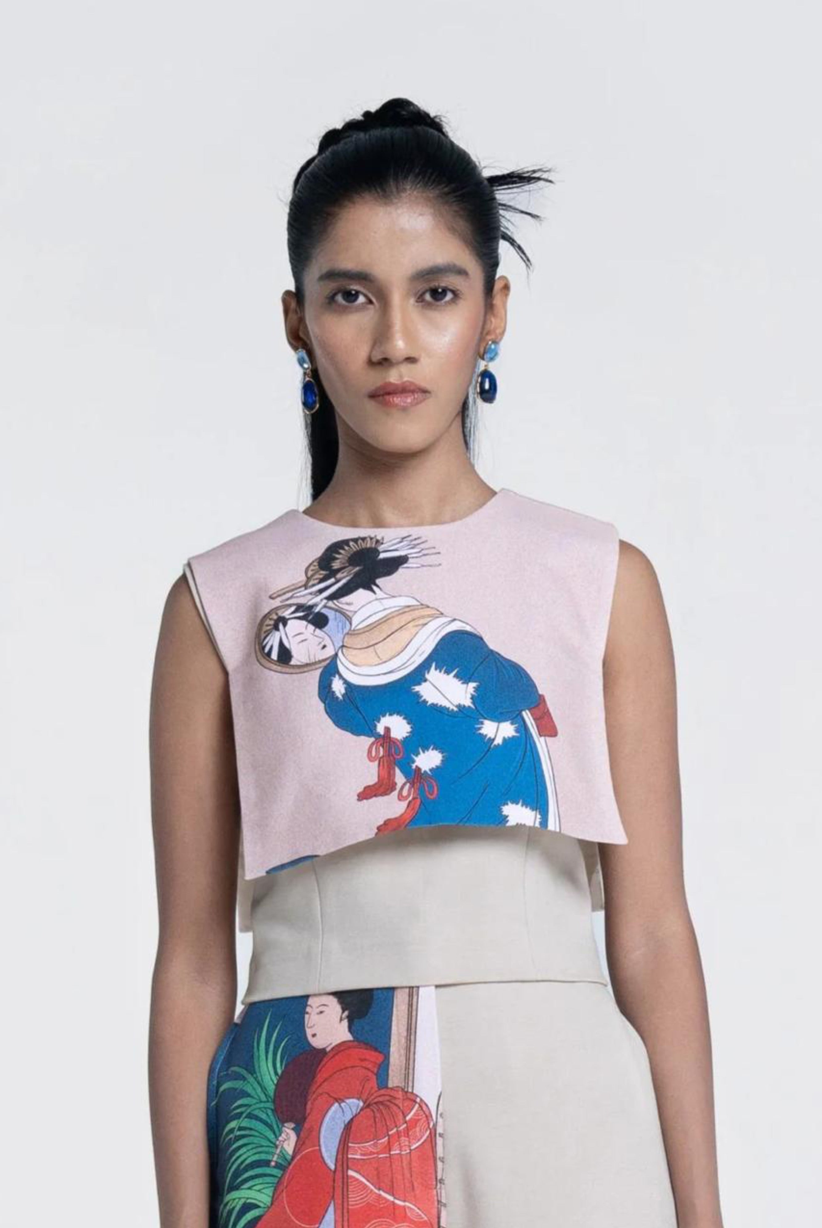 The collection, inspired by Kyoto's timeless beauty and the floating world of Ukiyo, captures the ephemeral elegance of Japanese culture. With prints reflecting Zen gardens, Shinto shrines, and Haiku poetry, it blends simplicity with depth. Mizuhiki-inspired embroidery and modern Kimono silhouettes offer free-flowing designs, embodying calmness and cultural richness.