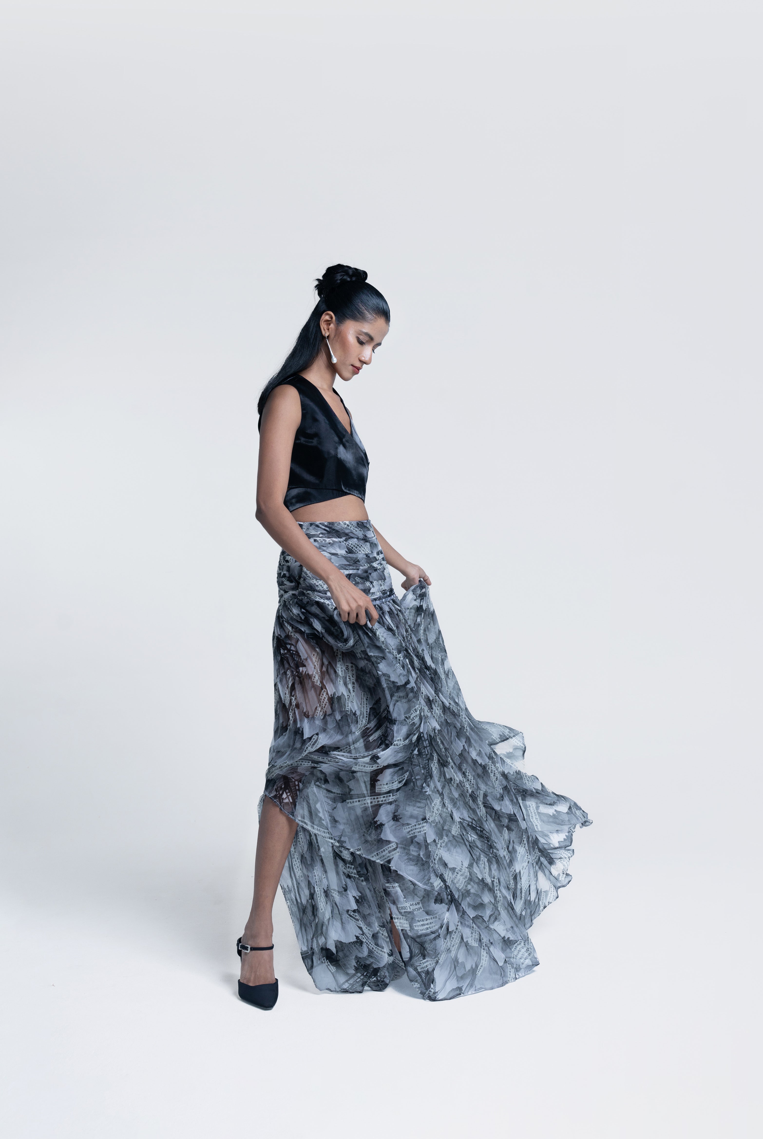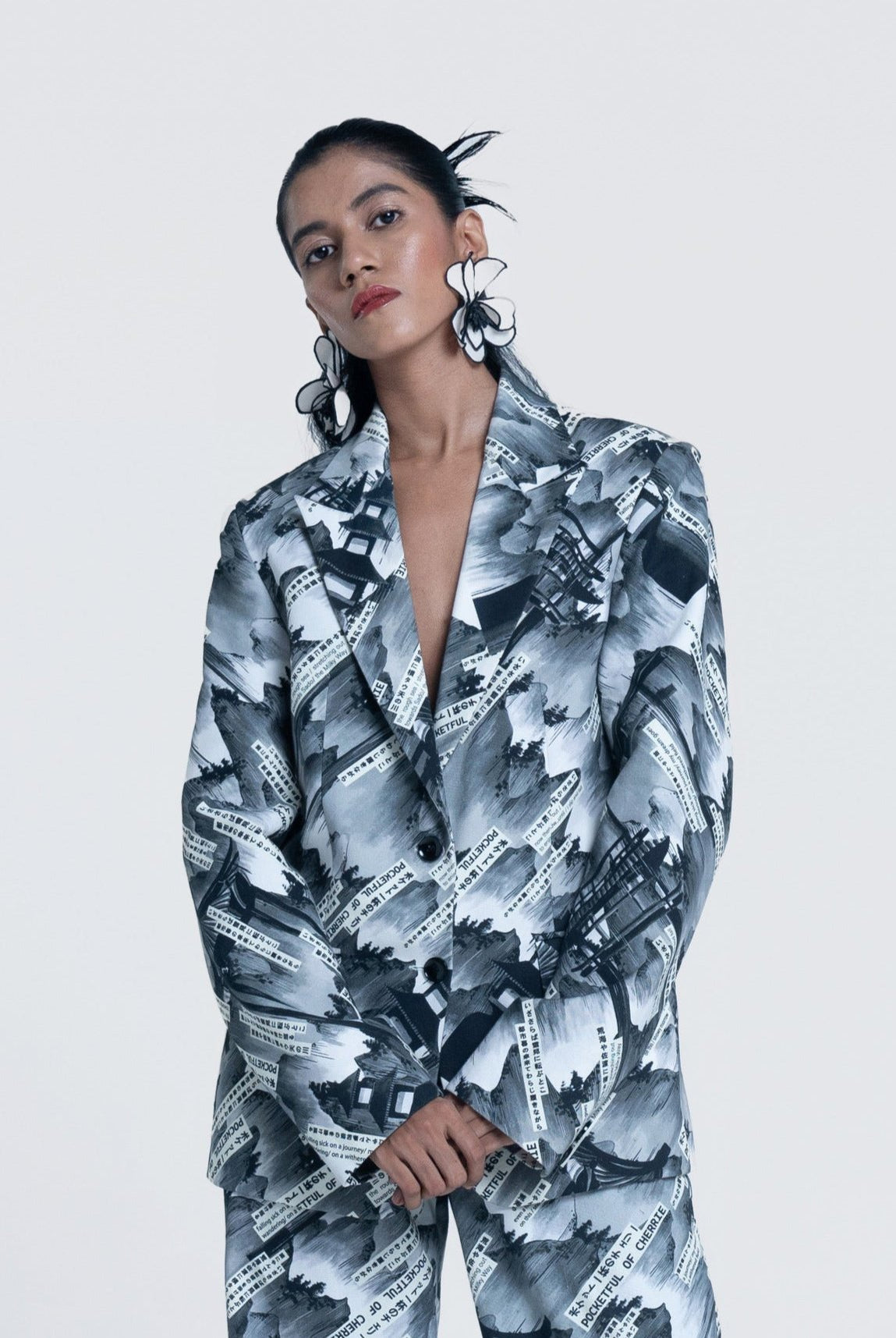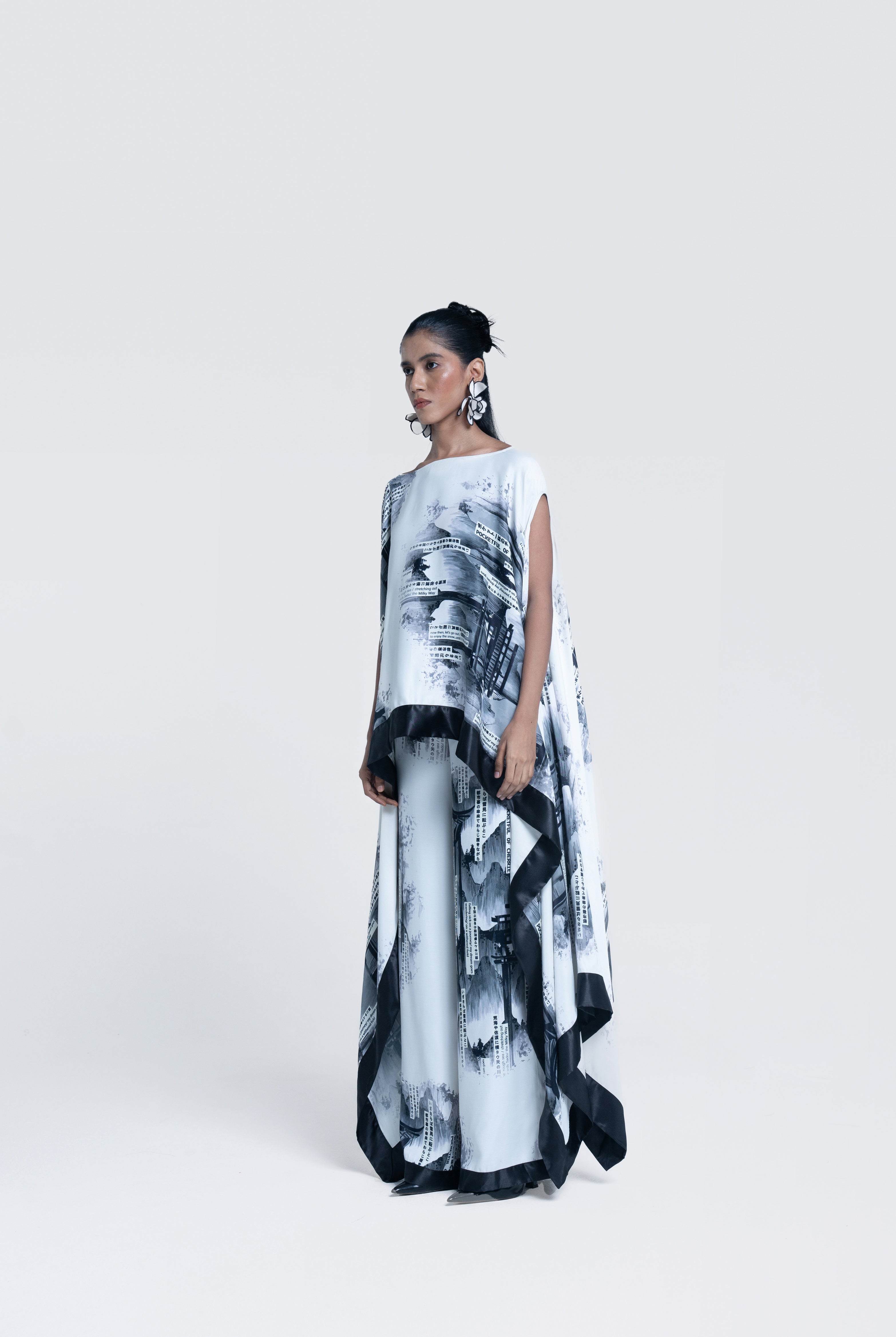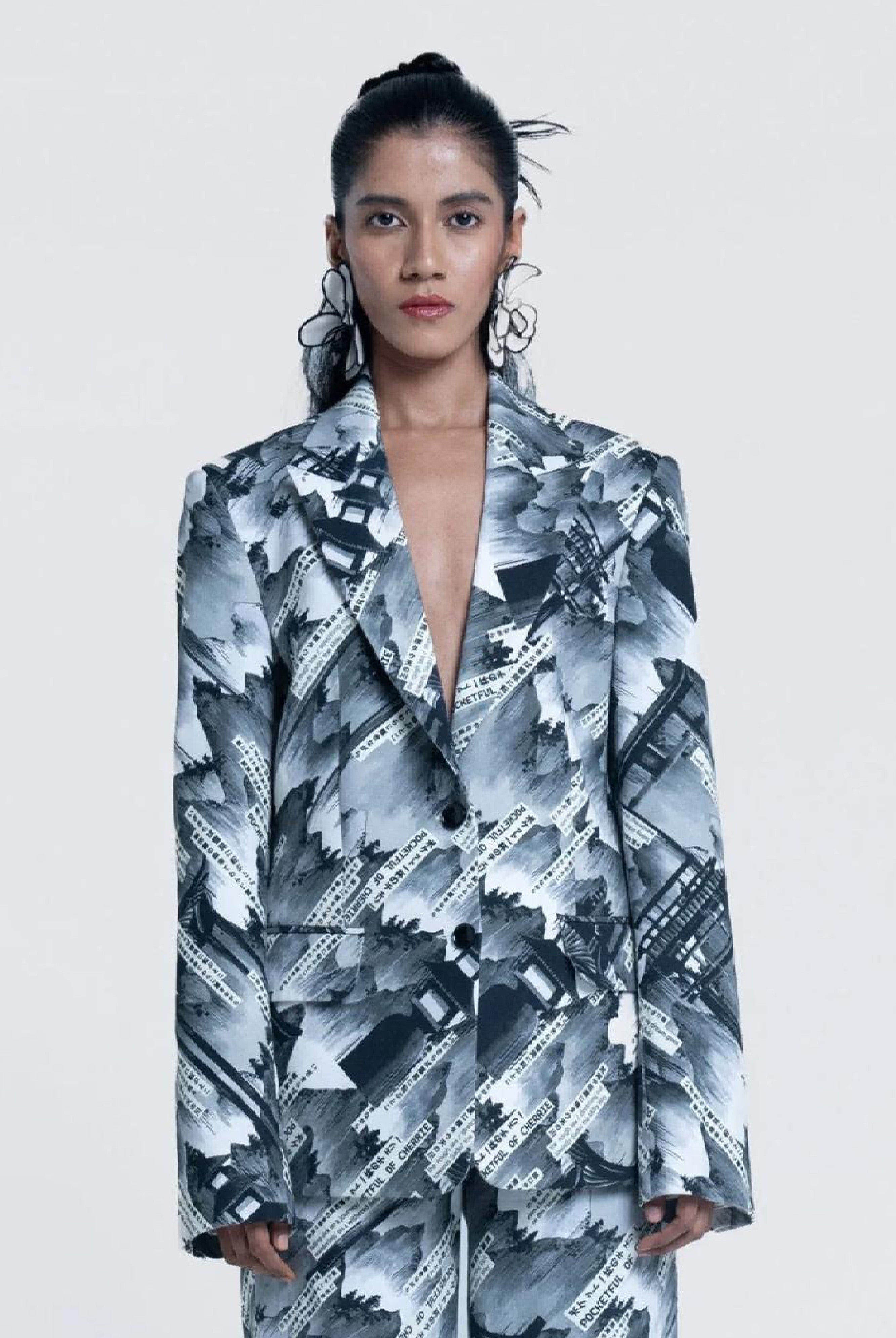 The collection, inspired by Kyoto's timeless beauty and the floating world of Ukiyo, captures the ephemeral elegance of Japanese culture. With prints reflecting Zen gardens, Shinto shrines, and Haiku poetry, it blends simplicity with depth. Mizuhiki-inspired embroidery and modern Kimono silhouettes offer free-flowing designs, embodying calmness and cultural richness.
