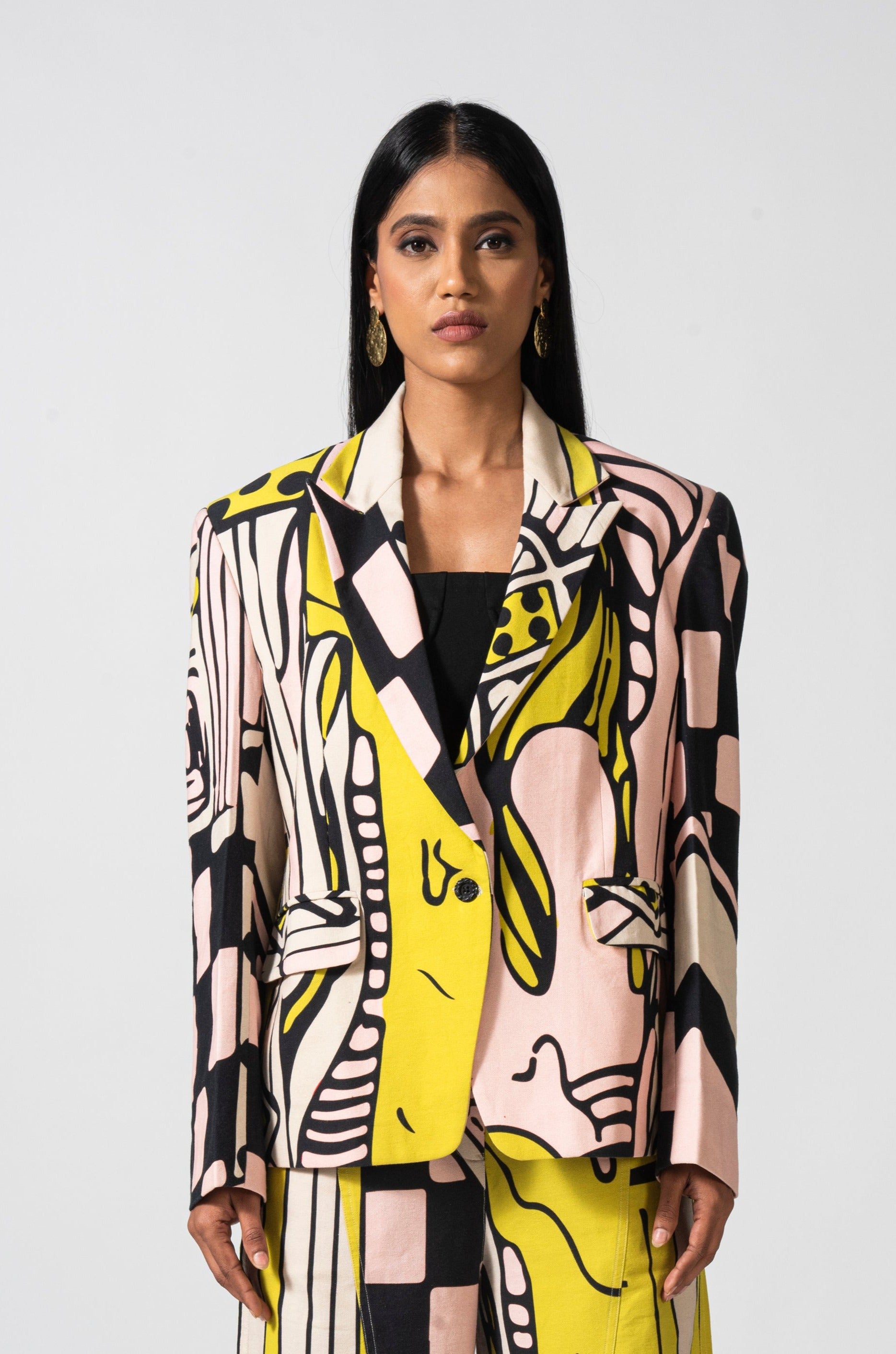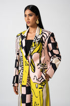 Make a statement with our straight fit blazer adorned with captivating melting heart prints. Elevate your ensemble with whimsical charm and contemporary flair.