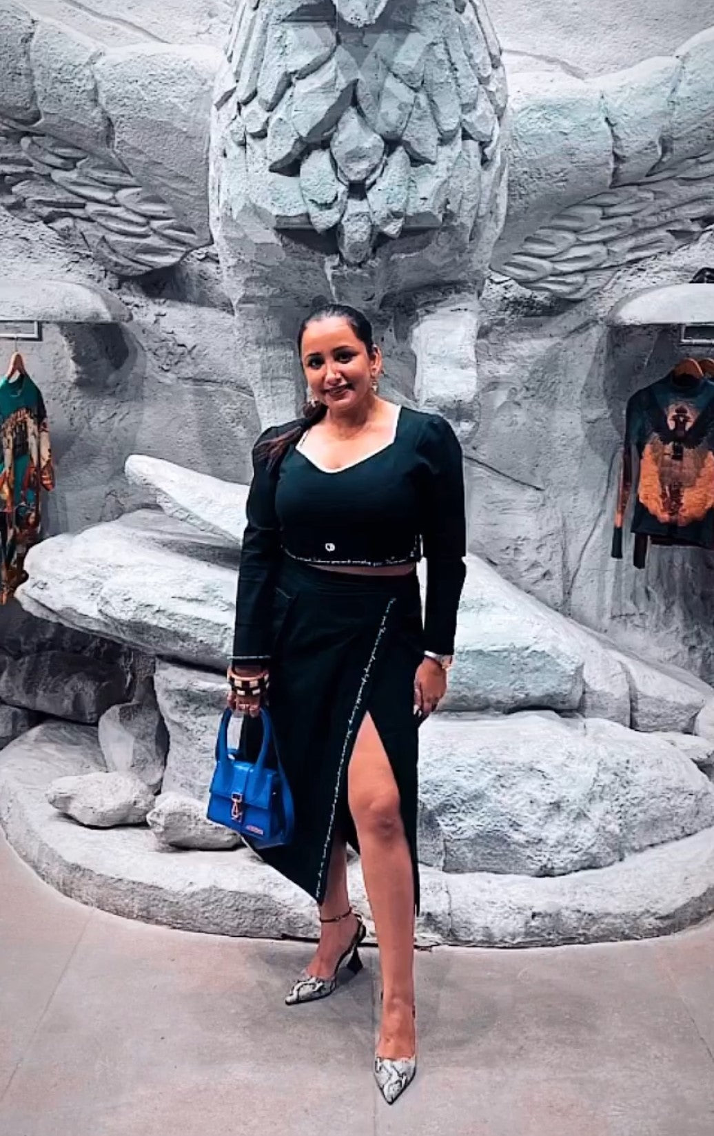 A blouse with contrasting neckline and khat embroidery on the hem. It is carefully hand embroidered with thread work showcasing the real love letters of lovers from the 20th century.