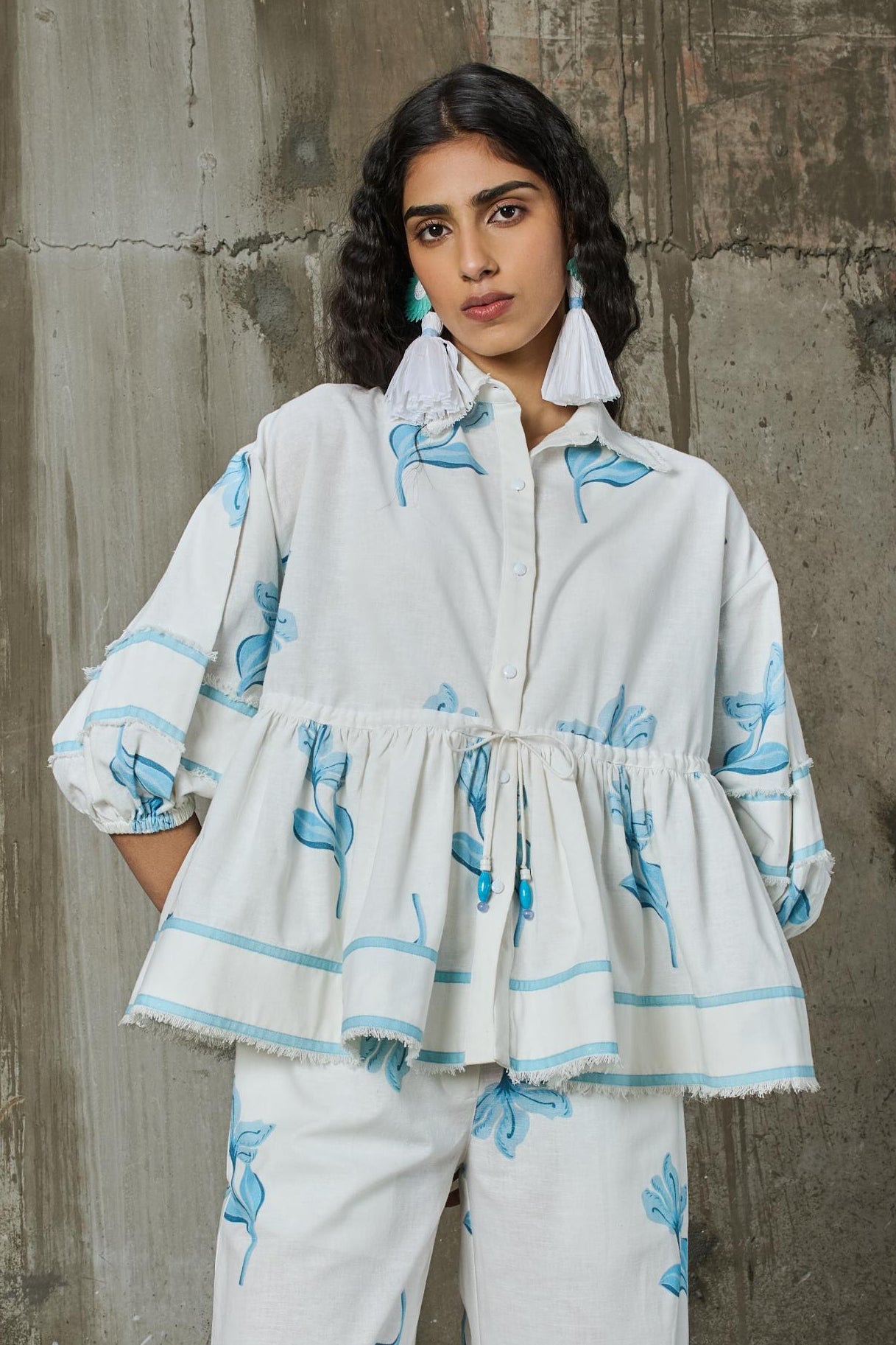 Moonlit Bloom Drawstring Peplum Top