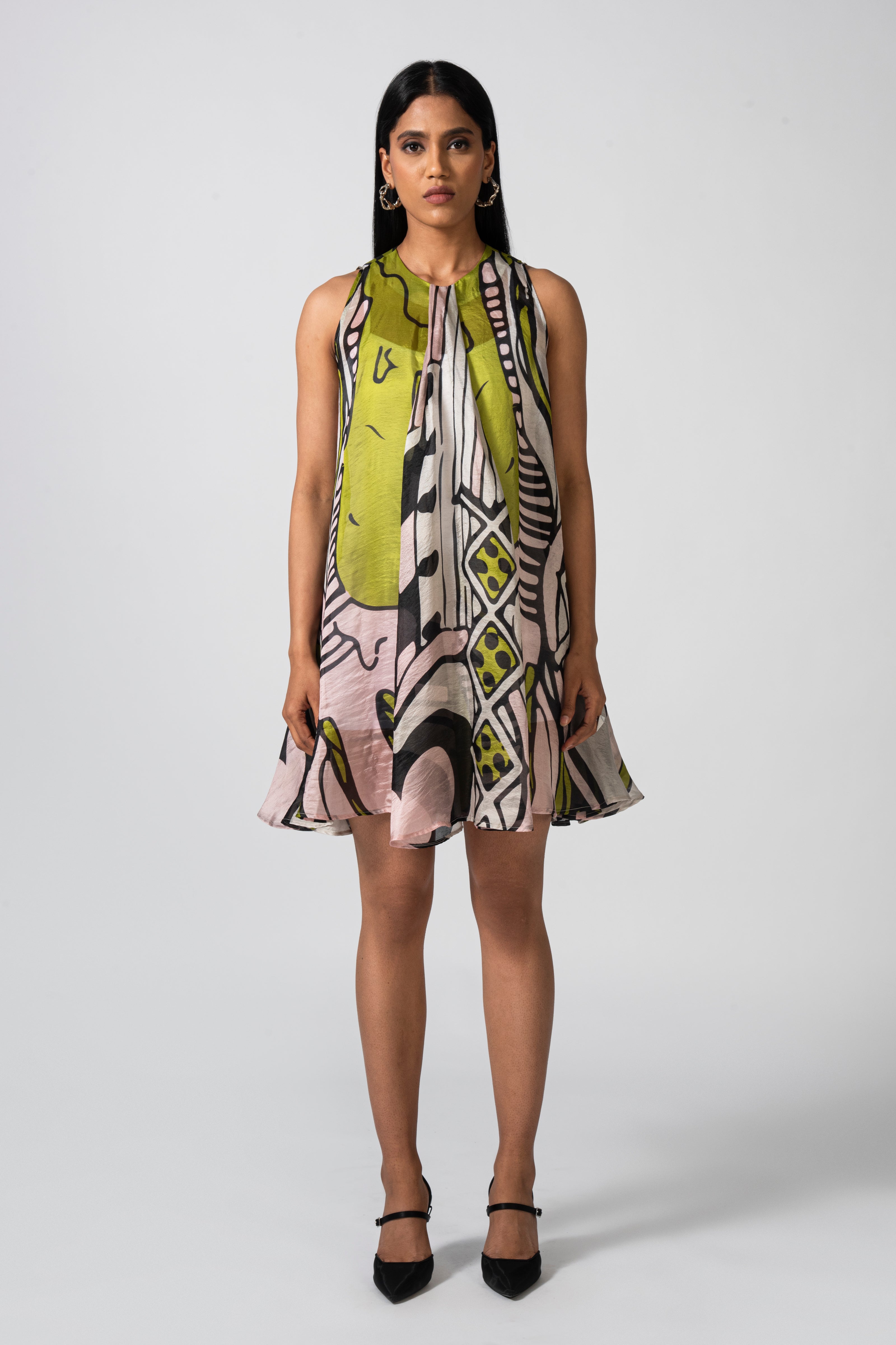 Elevate your elegance in our silk-flared dress adorned with a mesmerizing melting heart print. A fusion of sophistication and romance, perfect for captivating any occasion.